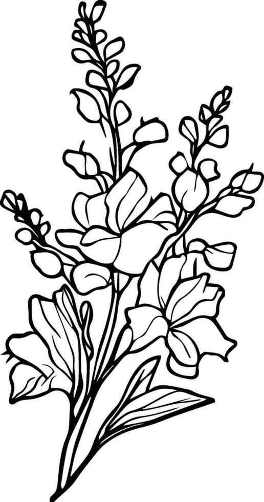 Premium Vector Delphinium Flower Line Art Hand Drawn Larkspur Flower Tattoos July Birth Flower Vector Sketchs